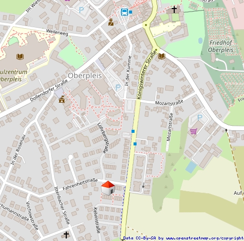 In der unmittelbaren Nähe zum Gebäude befinden sich kostenlose Parkmöglichkeiten und ein Kinderspielplatz. Der REWE Oberpleis ist fußläufig in wenigen Minuten erreichbar.