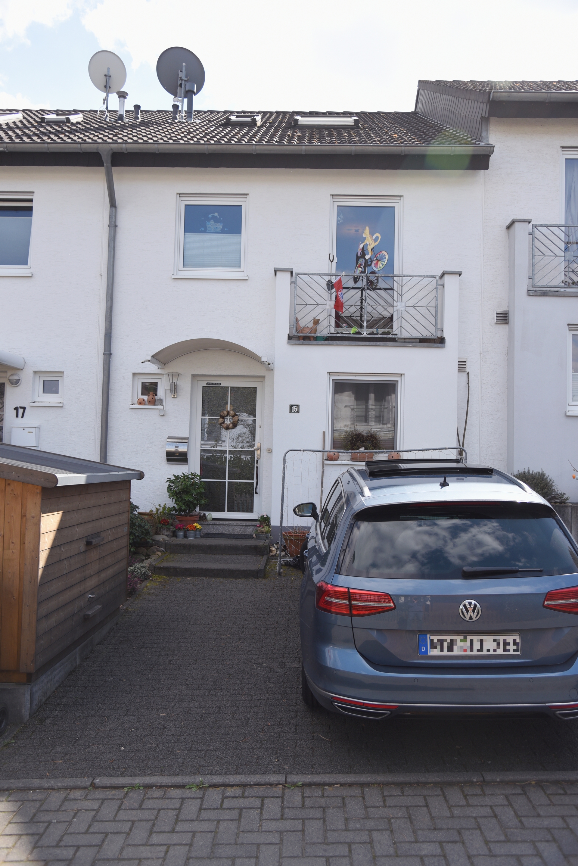 Vor dem Gebäude befinden sich ein PKW-Außenstellplatz und eine Fahrradgarage (mit Platz für bis zu vier Fahrrädern).